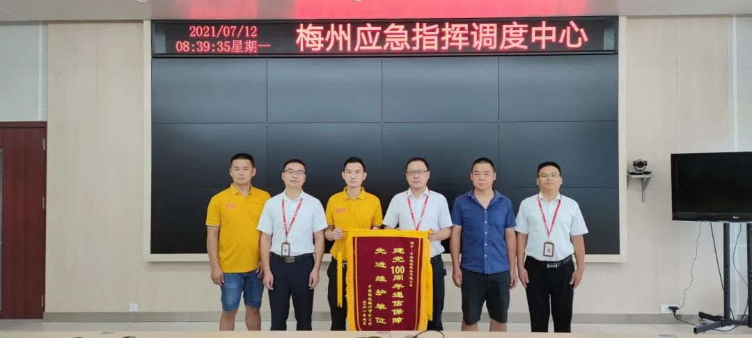 活动当天,各传输枢纽值守、干线盯防、仪表、车辆、应急物资全部到位,除落实安全人员24小时值班机制外,公司还部署实施了态势感知、应急响应、持续安全评估、安全监测巡检等措施,实现重保期间网络安全零事故。为此,星空游戏公司通服被中国联通梅州市分公司授予“建党100周年通信保障先进维护单位”的荣誉锦旗。